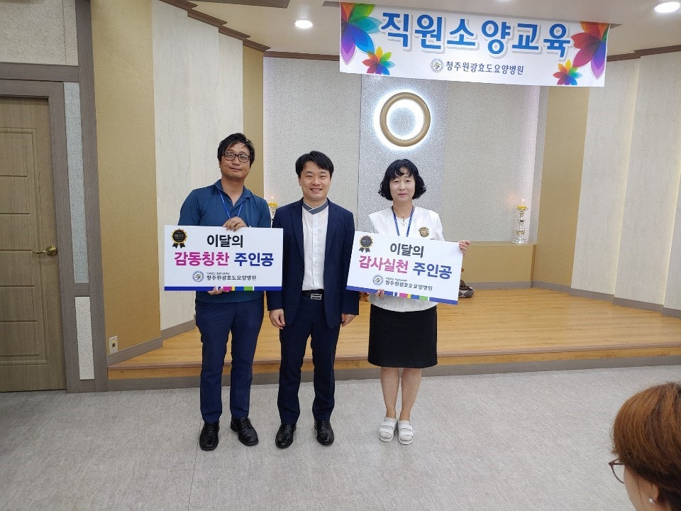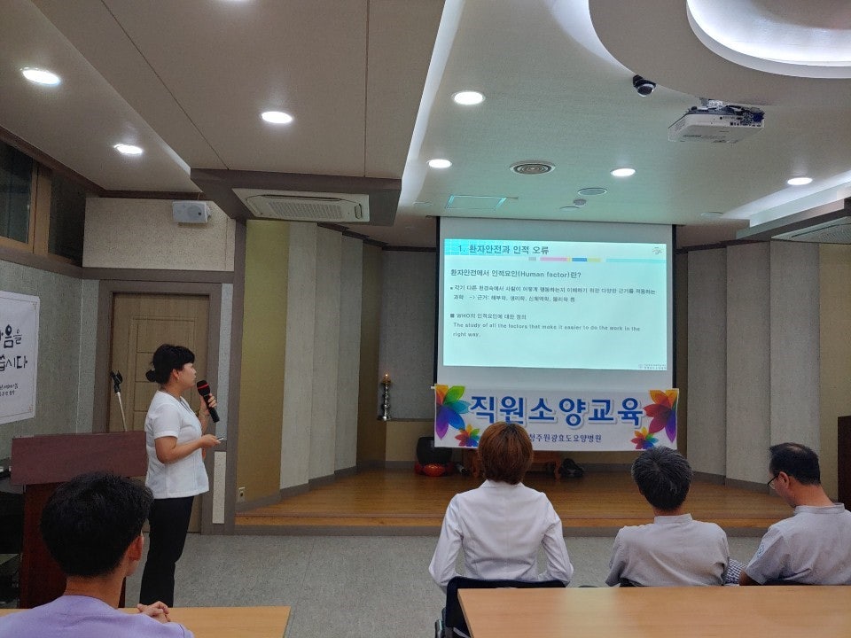 ¡ß 2019³â ûÁÖ¿ø±¤È¿µµ¿ä¾çº´¿ø 9¿ù Á÷¿ø ¼Ò¾ç±³À° ¡ß ¡Ü ÀÏ ½Ã : 2019³â 9¿ù 3ÀÏ(È), 08½Ã 20ºÐ ¡Ü Àå ¼Ò : ÁöÇÏ ¹ý´ç ¡Ü ´ë »ó : Àü Á÷¿ø ¡Ü ³» ¿ë ¡Ü 3´ë¸ñÇ¥½Çõ ºÎ¼»ó (°£È£ºÎ 3º´µ¿) ¡Ü ÀÌ´ÞÀÇ °¨»ç½Çõ_°¨µ¿ÄªÂù ÁÖÀΰø(°£È£ºÎÀå Àå¹®¼ö / °ü¸®ÁÖÀÓ ±Ç½ÂÅÃ) ¡Ü º´¿øÀ» ºû³½ ¿ì¼öÁ÷¿ø (°£È£ºÎ ¹ÚÀ±°æ, ¹ÚÁ¾ºÐ, À̸íÀÚ ¼±»ý´Ô) ¡Ü ½Å±ÔÁ÷¿ø Àλç (Áø·áºÎ - ½Å°æ°úºÎÀå ±èÀÎÇÏ) (°£È£ºÎ - À̹ÌÈ, ¿¬±Ô¹Î, À¯¹Ì¶õ, ÀÓ¿µ¶õ, ±è¿µÁ¦, ÀÌÇý¶õ, ½ÅÀº¿µ) ¡Ü ȯÀÚ ¾ÈÀü ±³À° (QPSÆÀÀå ¹è¹ÌÈ) 1) ȯÀÚ¾ÈÀüÀÇ °³³ä 2) ÀÎÀû¿äÀΰú ½Ã½ºÅÛÀÇ ÀÌÇØ ¡Ü¼Ò¾ç±³À°(º´¿øÀå ÃÖ¼øÈ£) ȯÀý±â¿¡ Á÷¿ø ¿©·¯ºÐµéÀÇ °Ç°¿¡ Èû½áÁÖ½Ã±æ ´çºÎµå¸®°í ³»³â 2ÁÖ±â ÀÎÁõÆò°¡¸¦ ´ëºñÇÏ¿© °¢ ºÎ¼ Â÷Áú¾øÀÌ ÁغñÇϱ⸦ ¹Ù¶õ´Ù. ¡Ü °ø°í ³«»ó ¹× °¨¿°Ä·ÆäÀÎ (9¿ù 11ÀÏ / 25ÀÏ ¼ö¿äÀÏ) ÆÀ ¾îÇÁ·ÎÄ¡ (9¿ù 4ÀÏ / 18ÀÏ ¼ö¿äÀÏ) Ãß¼®¸íÀý (9¿ù 12ÀÏ ~ 9¿ù 15ÀÏ) Áø·áºÎȸÀÇ (9¿ù 20ÀÏ ±Ý¿äÀÏ) »ê¾÷¾ÈÀüº¸°Ç±³À° (9¿ù 27ÀÏ ±Ý¿äÀÏ)