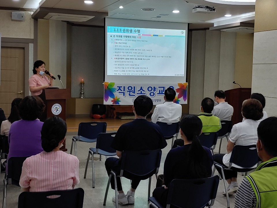 ¡ß 2020³â ûÁÖ¿ø±¤È¿µµ¿ä¾çº´¿ø 5¿ù Á÷¿ø ¼Ò¾ç±³À° ¡ß ¡Ü ÀÏ ½Ã : 2020³â 5¿ù 7ÀÏ(¸ñ), 08½Ã 20ºÐ ¡Ü Àå ¼Ò : ÁöÇÏ ¹ý´ç ¡Ü ´ë »ó : Àü Á÷¿ø ¡Ü ³» ¿ë ¡Ü 3´ë¸ñÇ¥½Çõ ºÎ¼»ó (°£È£ºÎ 6º´µ¿) ¡Ü º´¿øÀ» ºû³½ ¿ì¼ö Á÷¿ø(ÀÌ¿µÈñ, ¹è¹ÌÈ, ÇÔ¼øº¹, ä¼ö°æ) ¡Ü ÀÌ´ÞÀÇ ¿ì¼öºÎ¼(°ü¸®ÆÀ) ¡Ü ÀÌ´ÞÀÇ °¨»ç½Çõ_°¨µ¿ÄªÂù ÁÖÀΰø(qps½Ç ¹è¹ÌÈ / °£È£ºÎ ÀÓÇý¹Î) ¡Ü ½Å±ÔÁ÷¿ø¼Ò°³ - Áø·áºÎ ÀçȰÀÇÇаú ºÎÀå ÇѱԿë - °£È£ºÎ ȲÀºÁø, ¼¼ºÇõ, ±è¹ÎÁö, ¼ÕÀºÁ¤, Áö¼ÛÀ± - ¿µ¾çÆÀ ¿ÀÇϸ°, »ç¼Ò¿µ, ¹Î±Ý¿Á, ³ëÀºÁÖ, À̱ÔÁ¤ - ÀçȰÆÀ ±è¸ð¾Æ, ±è½Ã¿¬ - ¿ø¹«ÆÀ À¯ÁÖÈñ, À±ÁöÀº ¡Ü °¨¿°°ü¸®±³À°(°¨¿°°ü¸® ´ã´çÀÚ ÀÓ¿µ¶õ) 1) °¨¿°°ü¸®Ã¼°è 2) ¼Õ À§»ý ¼öÇà 3) Äڷγª19 ´ëÀÀü°è ¡Ü¼Ò¾ç±³À°(º´¿øÀå ÃÖ¼øÈ£) 1) °³°³ÀÎ ¸ðµÎ°¡ »ýȰ¹æ¿ª Á¤ºÎÁöħÀ» ÁöÄÑ Äڷγª19 ±Øº¹¿¡ Èû¾²ÀÚ. 2) 2ÁÖ±â ÀÎÁõÆò°¡°¡ ¿¬±âµÇ¾úÁö¸¸, ´õ¿í öÀúÇÑ ±ÔÁ¤ °ü¸®·Î ÀÎÁõ¿¡ ´ëºñÇÏÀÚ. 3) Àü Á÷¿ø °Ç°¿¡ À¯ÀÇÇϸç,ȯÀÚ º¸È£ÀÚ°¡ ã¾Æ¿À´Â ǰ°ÝÀÖ´Â º´¿øÀÌ µÇµµ·Ï ³ë·ÂÇÏÀÚ. ¡Ü°øÁö»çÇ× ³«»ó ¹× °¨¿°¿¹¹æÄ·ÆäÀÎ (5¿ù6ÀÏ, 20ÀÏ) ÆÀ ¾îÇÁ·ÎÄ¡ (5¿ù 13ÀÏ, 27ÀÏ) Áø·áºÎ ȸÀÇ (5¿ù 19ÀÏ) ¿Â¶óÀÎ ±³À° (5¿ù 6ÀÏ~6¿ù 5ÀÏ) ¾î¹öÀ̳¯ Çà»ç(5¿ù 8ÀÏ) »ê¾÷¾ÈÀüº¸°Ç±³À°(5¿ù 29ÀÏ)