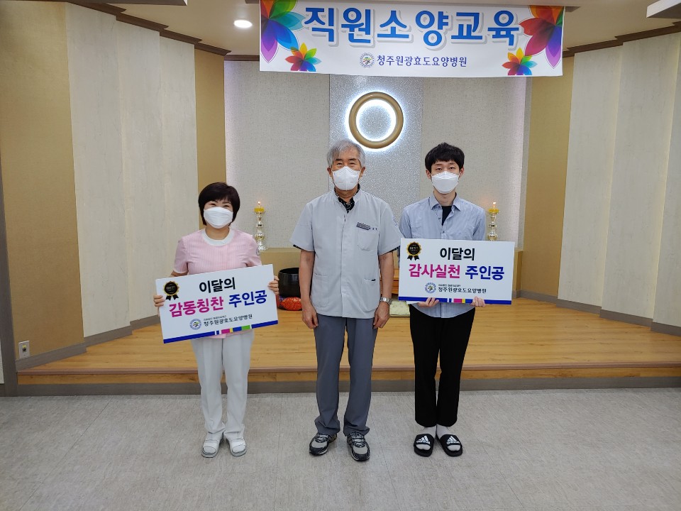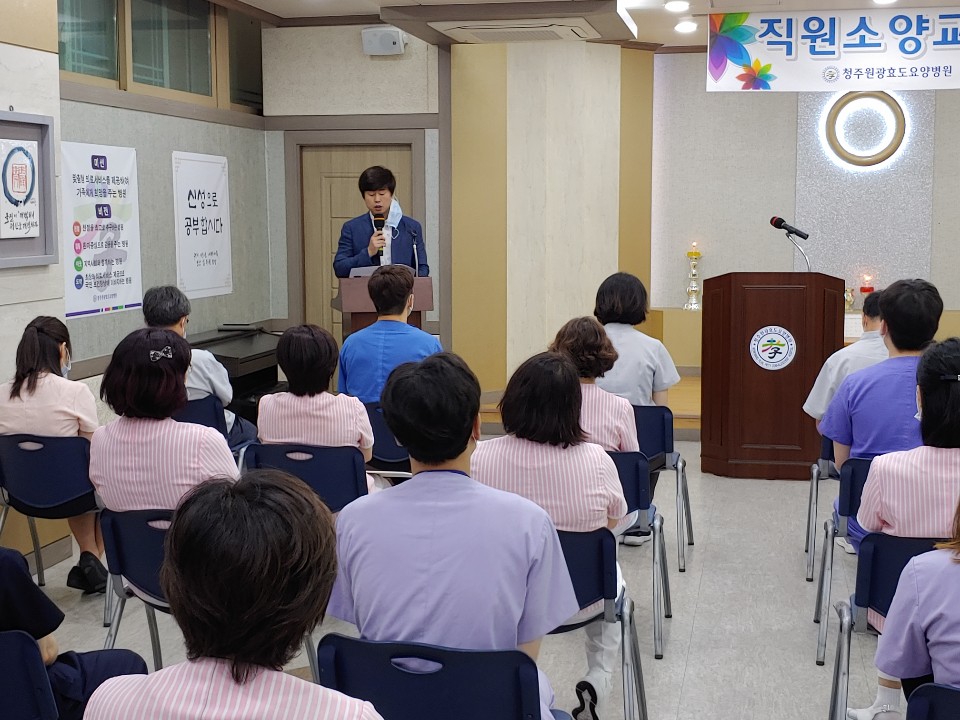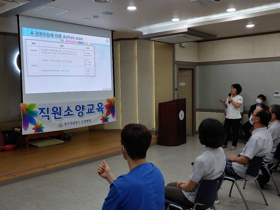 ¡ß 2020³â ûÁÖ¿ø±¤È¿µµ¿ä¾çº´¿ø 7¿ù Á÷¿ø ¼Ò¾ç±³À° ¡ß ¡Ü ÀÏ ½Ã : 2020³â 7¿ù 1ÀÏ(¼ö), 08½Ã 20ºÐ ¡Ü Àå ¼Ò : ÁöÇÏ ¹ý´ç ¡Ü ´ë »ó : Àü Á÷¿ø ¡Ü ³» ¿ë ¡Ü ÀÌ´ÞÀÇ °¨»ç½Çõ_°¨µ¿ÄªÂù ÁÖÀΰø(»çȸ»ç¾÷ÆÀ ÀÌ»óÁØ / °£È£ºÎ ±è¸í¼ø) ¡Ü ½Å±ÔÁ÷¿ø¼Ò°³ - °£È£ºÎ Á¤ÁøÈ£ ¡Ü ÀÔ¿øÈ¯ÀÚ ºñÁ¢ÃË ¸éȸÁöħ(QPSÆÀÀå ¹è¹ÌÈ) 1) ÃßÁø¹è°æ ¹× ³»¿ë 2) ¸éȸ°´ °ü¸® ¹æ¾È 3) Á÷¿ø Çൿ¿ä·É ¡Ü Äڷγª19 °ü·Ã ¿ä¾çº´¿ø Á¾»çÀÚ ¼÷Áö»çÇ×(±âȹóÀå ¿¬Áø¿ì) ¡Ü¼Ò¾ç±³À°(º´¿øÀå ÃÖ¼øÈ£) 1) Äڷγª19´Â ¸¶½ºÅ© Âø¿ë ½Ã 80% ÀÌ»óÀÇ °¨¿°¿¹¹æ È¿°ú°¡ ÀÖÀ¸´Ï, ¹ÐÆóµÈ °ø°£À̳ª ¿ÜºÎȰµ¿ ½Ã ²À ¸¶½ºÅ© Âø¿ëÇÏ½Ã±æ ¹Ù¶õ´Ù. 2) 3´ë¸ñÇ¥¸¦ ÀÏ»óÈÇÏÀÚ 3) 9¿ù 2ÁÖ±â ÀÎÁõÆò°¡¿¡ ´ëºñÇÏ¿© ´Ù½ÃÇѹø »ìÇÇÀÚ 4) Àü Á÷¿ø ÇÕ½ÉÇÕ·Â ÇÏ¿© ȯÀÚÀ¯Ä¡¿¡ Èû¾²ÀÚ ¡Ü°øÁö»çÇ× ³«»ó ¹× °¨¿°¿¹¹æÄ·ÆäÀÎ (7¿ù 1ÀÏ, 15ÀÏ, 29ÀÏ) ÆÀ ¾îÇÁ·ÎÄ¡ (7¿ù 8ÀÏ, 21ÀÏ) ±âȹȸÀÇ ¿öÅ©¼¥ (7¿ù 17ÀÏ~7¿ù 18ÀÏ) Áø·áºÎ ȸÀÇ (7¿ù 20ÀÏ) °£È£ºÎ ÄÁÆÛ·±½º ¹× »ê¾÷¾ÈÀüº¸°Ç±³À° (7¿ù 24ÀÏ)
