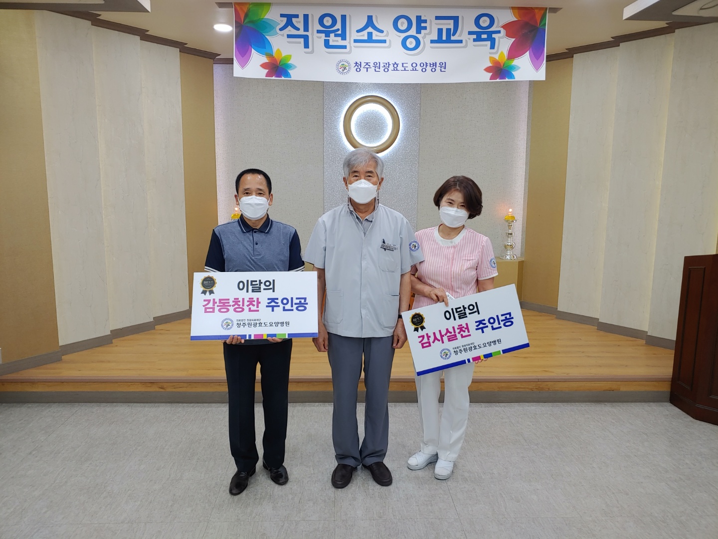 ¡ß 2021³â ûÁÖ¿ø±¤È¿µµ¿ä¾çº´¿ø 7¿ù Á÷¿ø ¼Ò¾ç±³À° ¡ß ¡Ü ÀÏ ½Ã : 2021³â 7¿ù 2ÀÏ(±Ý), 08½Ã 20ºÐ ¡Ü Àå ¼Ò : ÁöÇÏ ¹ý´ç ¡Ü ´ë »ó : Äڷγª19 ¹æ¿ª¼öÄ¢ Áؼö (50ÀÎ ÀÌÇÏ) - ³» ¿ë- ¡Ü ÀÌ´ÞÀÇ °¨»ç½Çõ_°¨µ¿ÄªÂù ÁÖÀΰø(°£È£ºÎ ½É»ó¼÷ / °ü¸®ÆÀ ±è½Â±â) ¡Ü 2021³âµµ ÇϹݱ⠰濵 ¹æÇ⼺ (±âȹóÀå ¿¬Áø¿ì) 1) 21³âµµ »ó¹Ý±â ¸ÅÃâ ÇöȲº¸°í 2) ½Å¼³»ç¾÷(±¹°¡º¸ÈÆÁöÁ¤, °¨¿°º´½Ç) ȯÀÚÀ¯Ä¡ °èȹ¾È 3) Áö¿ª¿¬°è Ȱµ¿ ¹× º´¿ø È«º¸ ¡Ü ¼Ò¾ç±³À°(º´¿øÀå ÃÖ¼øÈ£) 1) Äڷγª19·Î ¸¹Àº °÷ÀÌ Èûµç À̶§ Á÷¿øºÐµéÀÇ ¹æ¿ªÁöħ Áؼö·Î º°Å»¾øÀ½¿¡ °¨»çµå¸³´Ï´Ù. 2) À帶öÀÌ ´Ù°¡¿È¿¡ µû¶ó Á÷¿øºÐµéÀÇ °Ç°°ü¸®¸¦ ´çºÎµå¸³´Ï´Ù. 3) ¹é½ÅÀ» ¸Â¾ÒÁö¸¸ °¨¿°°ü¸®¿¡ öÀúÈ÷ ÇÏ¿© Äڷγª19 º¯ÀÌ ¹ÙÀÌ·¯½º¿¡µµ ´ëÃ³ÇØ Áֽñ⠹ٶø´Ï´Ù. 4) ƯȻç¾÷, º¸ÈÆ, °¨¿°º´½Ç Ȱ¼ºÈ¸¦ À§Çؼ´Â ÀÓÁ÷¿ø ¸ðµÎÀÇ ³ë·ÂÀÌ ÇÊ¿äÇÕ´Ï´Ù. ȯÀÚÀ¯Ä¡¿¡ ´ÙÇÔ²² ³ë·ÂÇØÁÖ½Ã±æ ¹Ù¶ø´Ï´Ù.